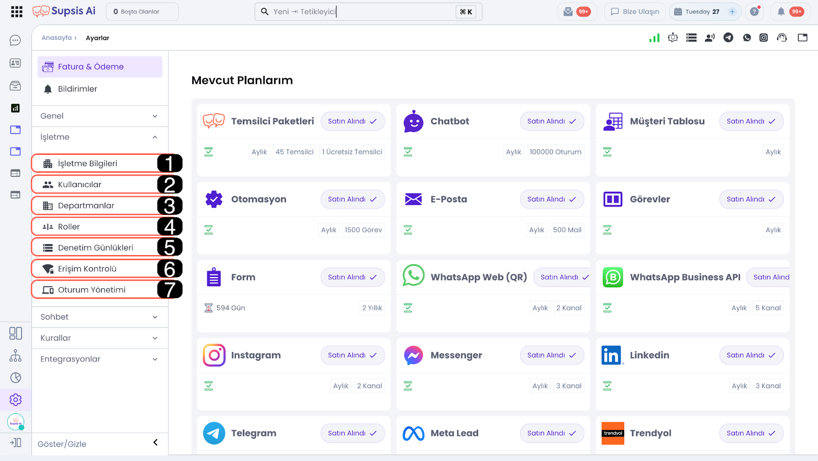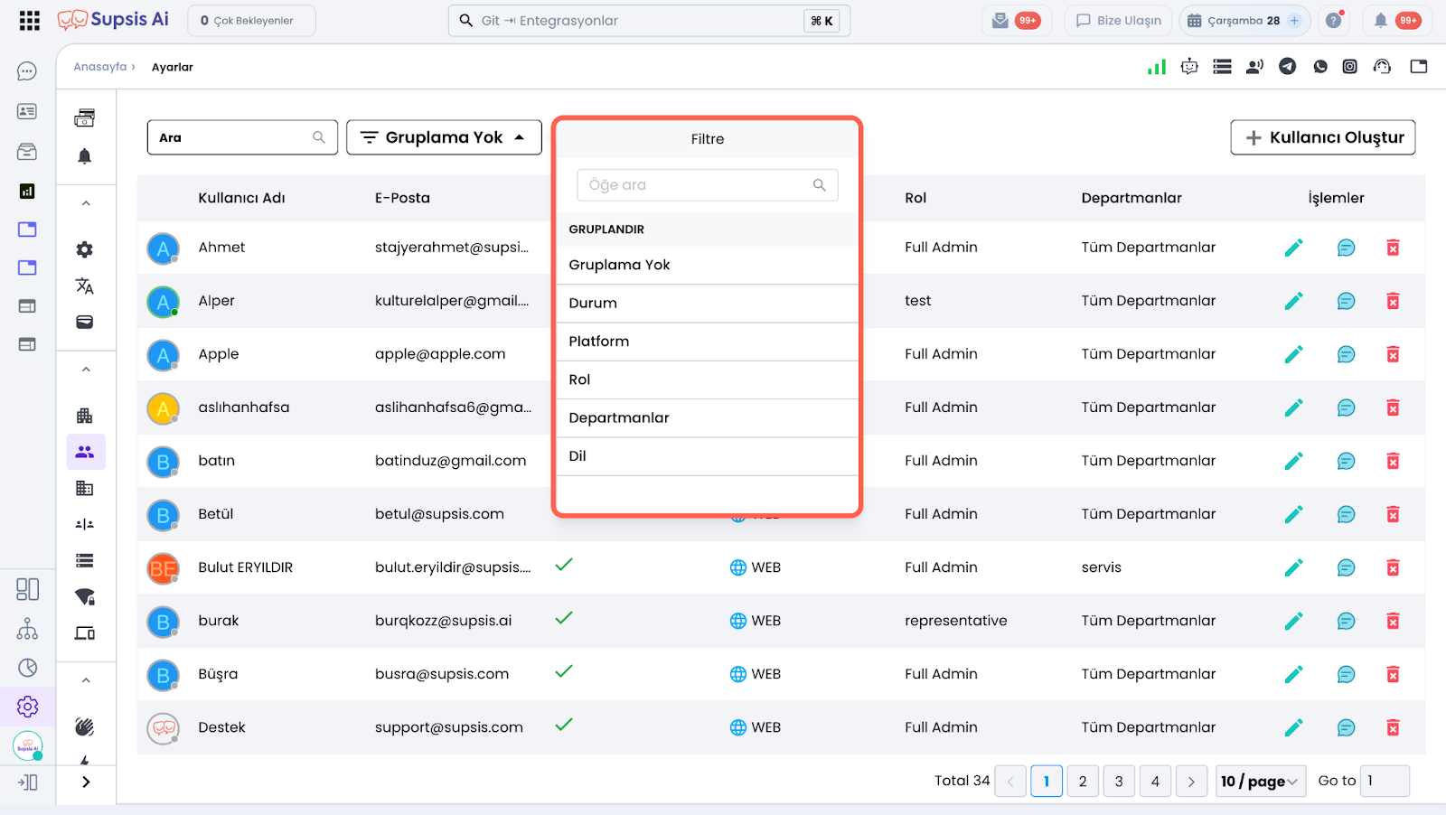 - Rol: Kullanıcılar sahip oldukları yetki rollerine göre (Admin, Temsilci vb.) gruplara ayrılır.