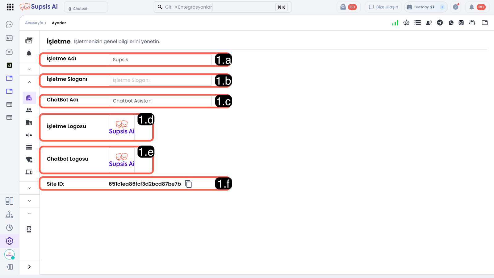 Site ID, Supsis Ai panelinizin sistem içerisinde benzersiz şekilde tanımlanmasını sağlayan özel kimlik numarasıdır. Bu ID, özellikle API entegrasyonları ve diğer dış kaynak bağlantılarında aktif olarak kullanılır.