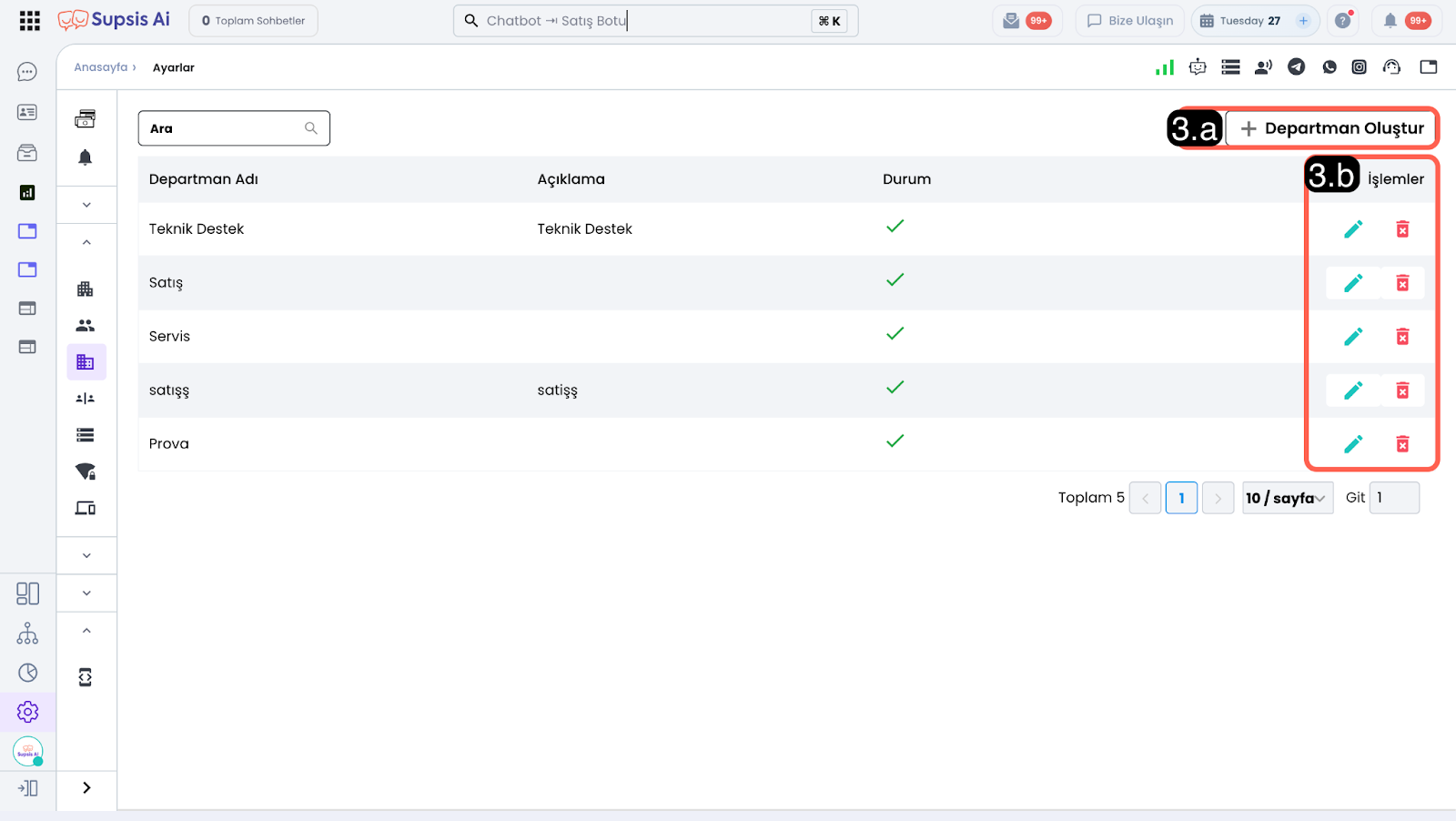 Departman yönetimi hakkında detaylı bilgi için Departmanlar dokümanını inceleyebilirsiniz.