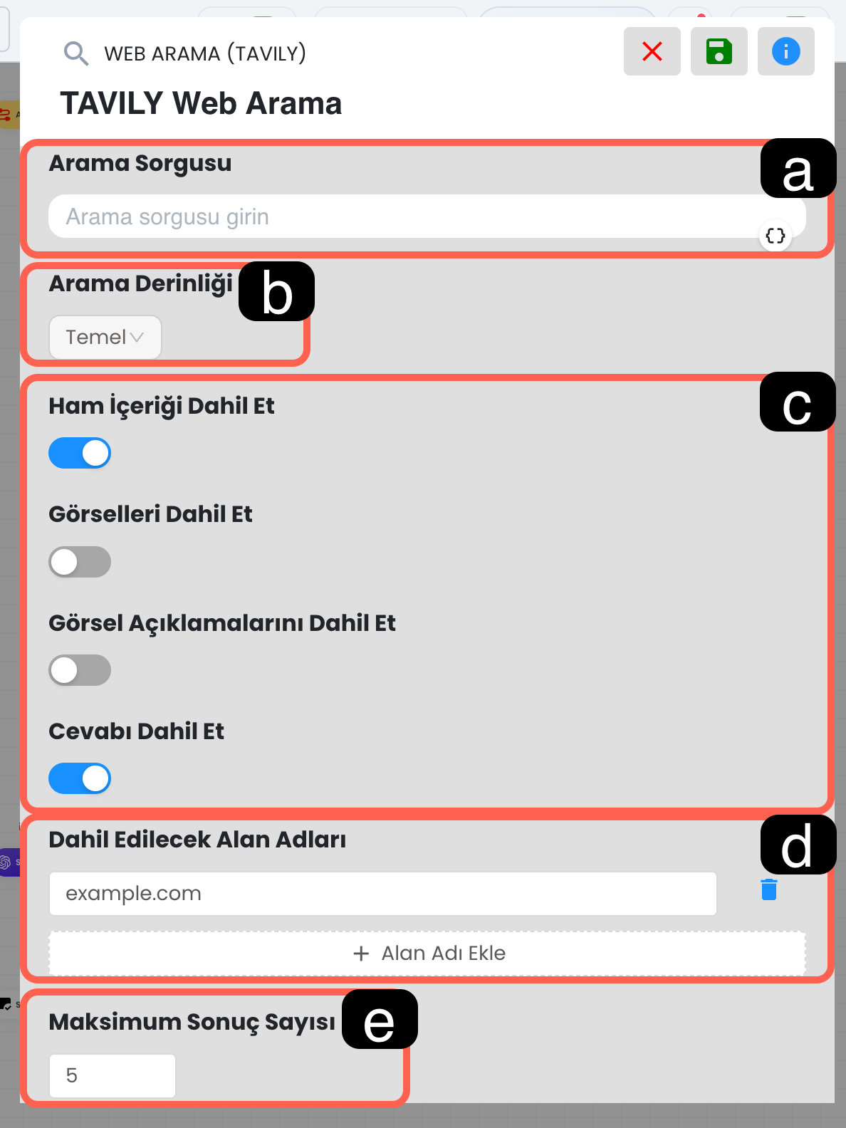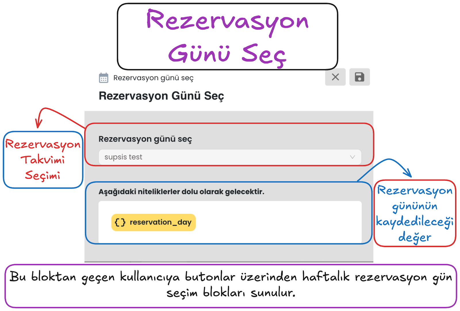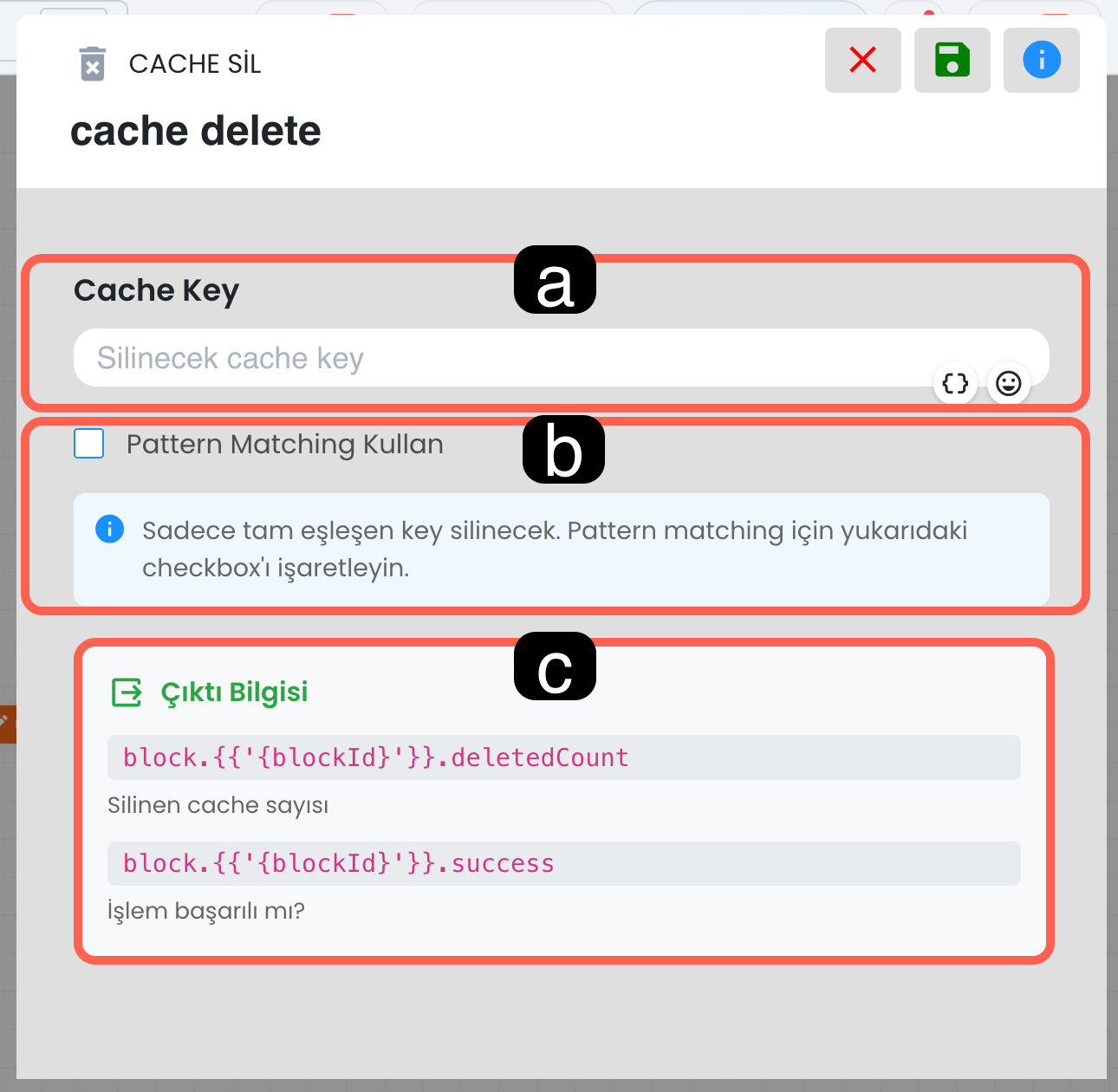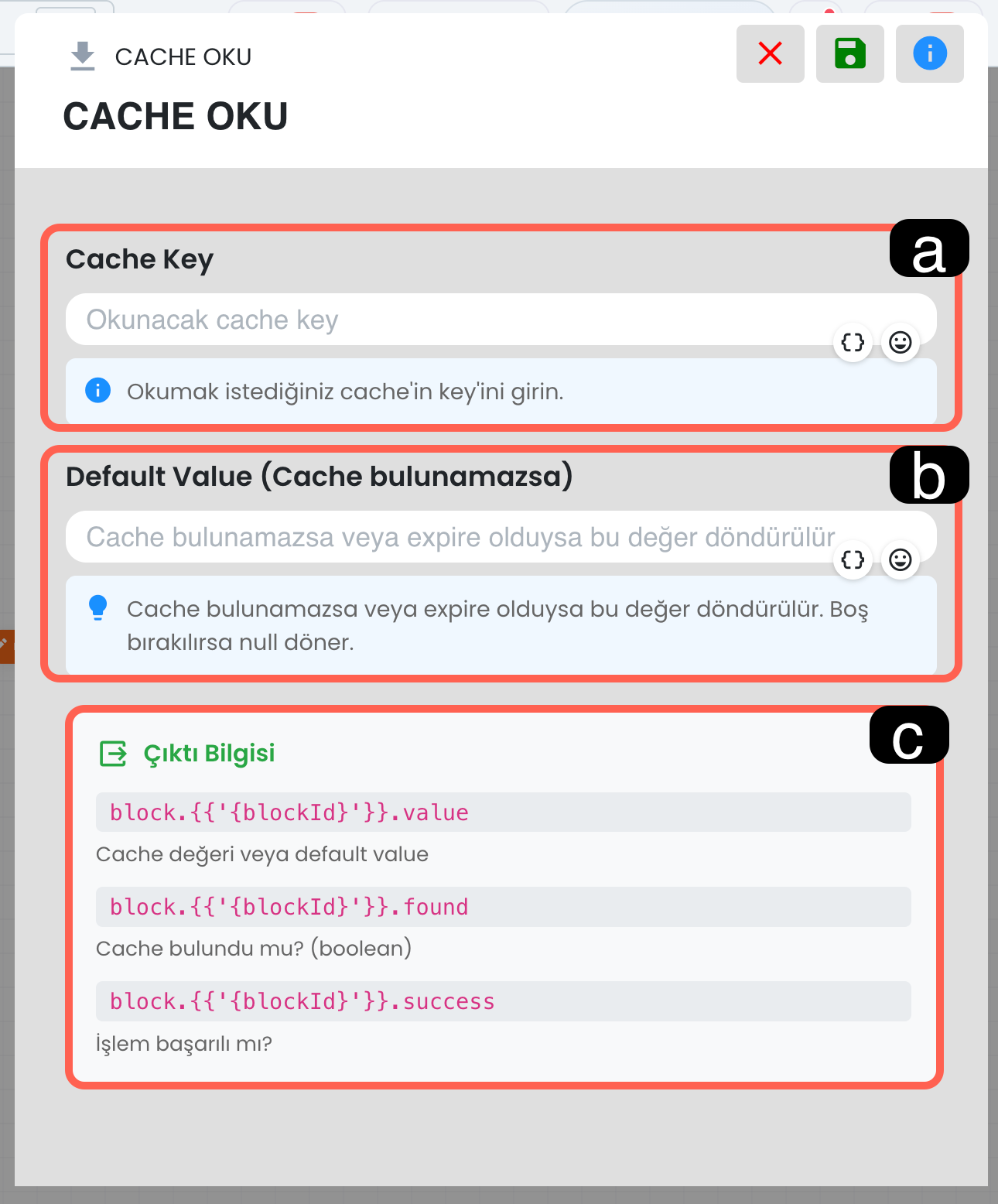 İfade ve kategori alanlarında süslü parantez simgesini kullanarak ilgili alana dinamik değer ekleyebilirsiniz. Böylece yapay zeka yalnızca sabit bir metni değil, senaryo sırasında oluşmuş dinamik verileri de sınıflandırma işleminde kullanılabilir.