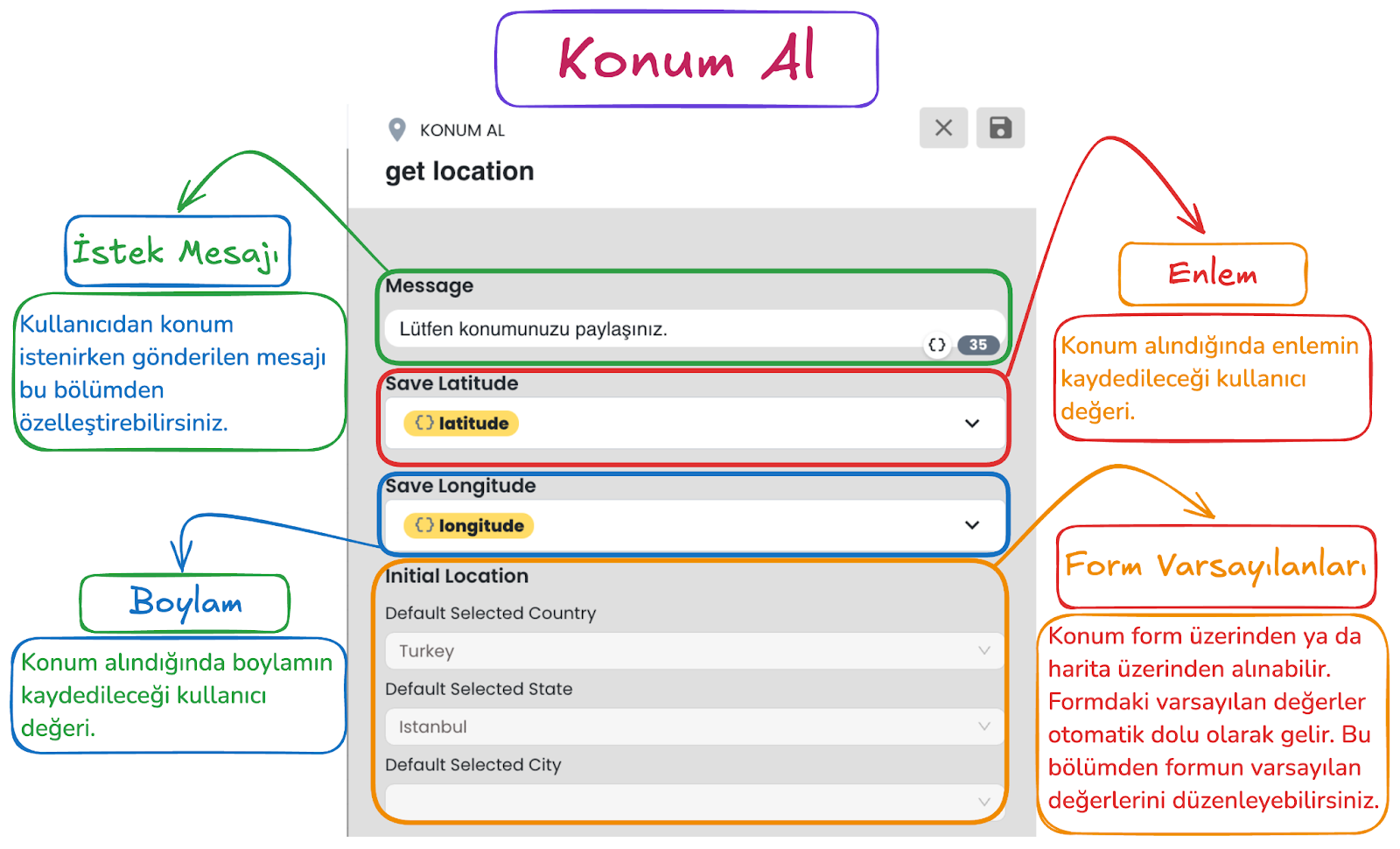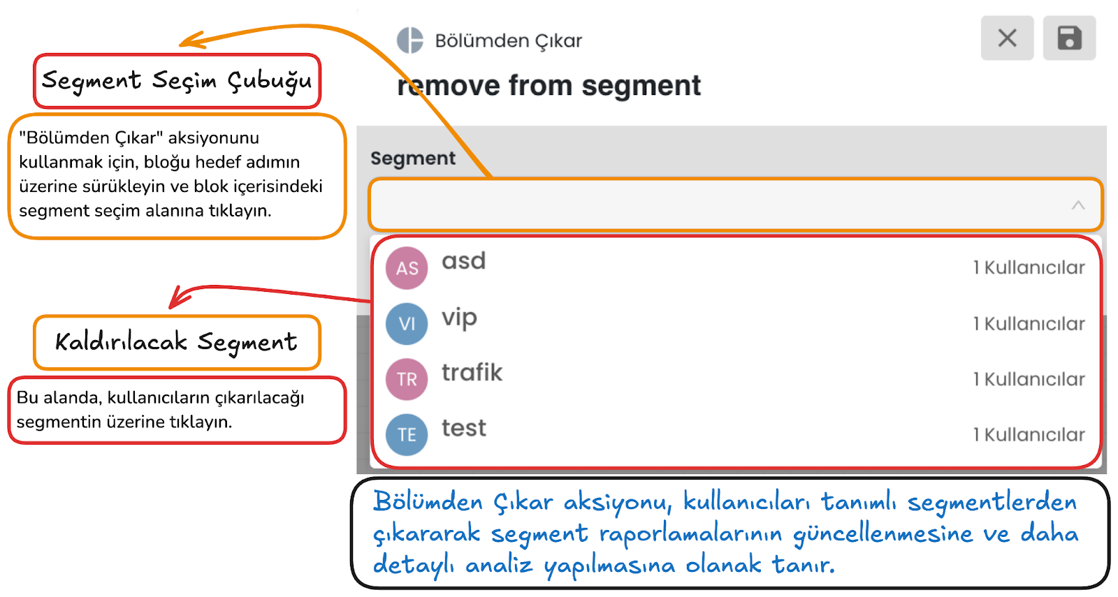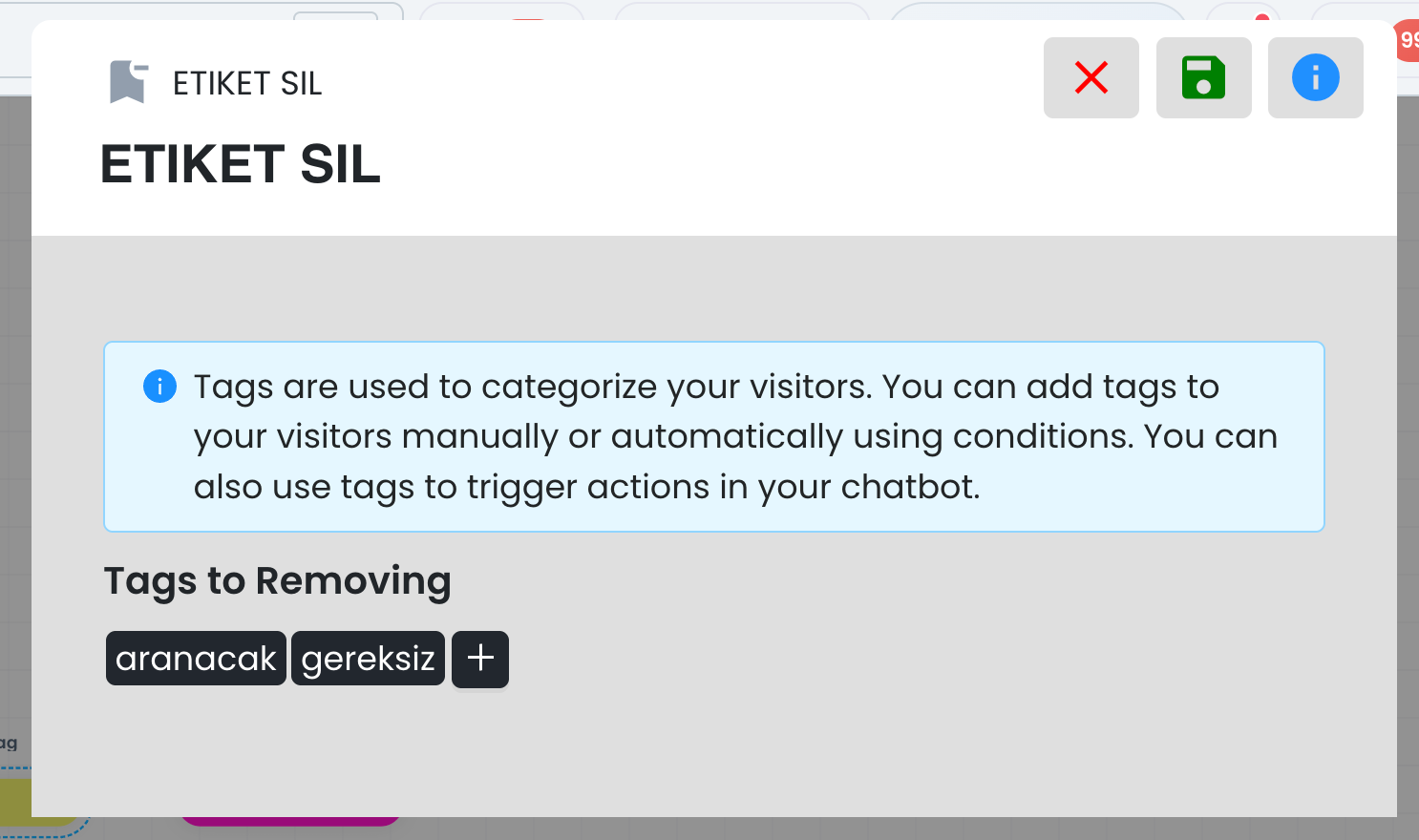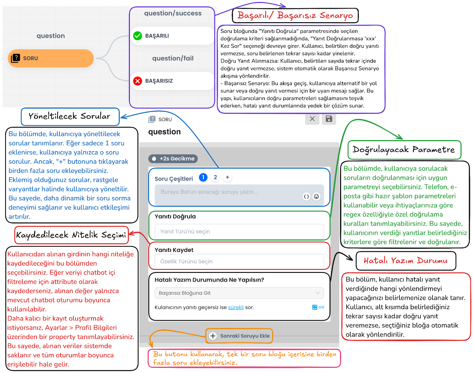 Bu alan, kullanıcıdan alınan verinin seçilen bir özelliğe kaydedilmesini sağlar. Böylece örneğin kullanıcının yazdığı e-posta adresi, telefon numarası veya başka bir bilgi profil kartına ya da ilgili kayıt alanına alınabilir. Kaydedilen veriler daha sonra filtreleme, segmentasyon ve kişiselleştirilmiş yanıt üretimi için tekrar kullanılabilir.