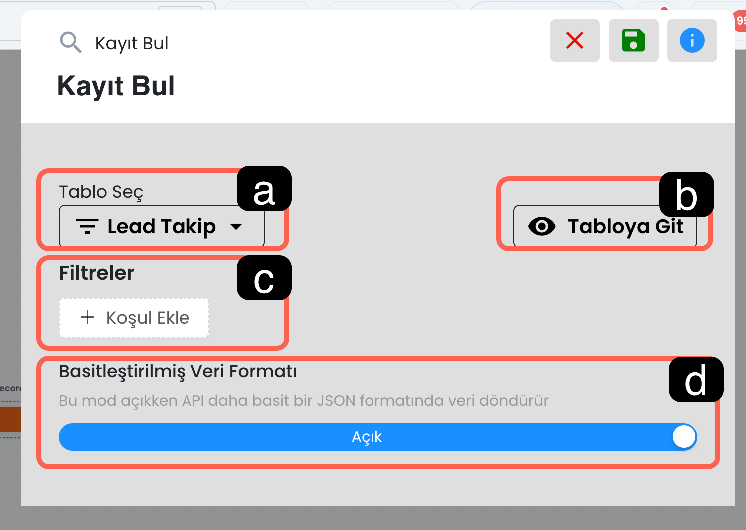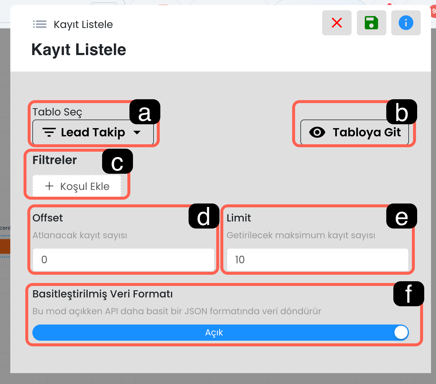 Sorgulama sonucunda gelen bilgiler bu alanda listelenir. Bu veriler, chatbot akışı içerisinde bir sonraki aksiyonlarda kullanılabilir.