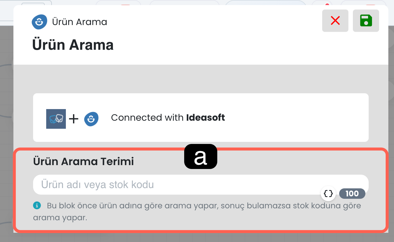 Bu blok, Ideasoft mağazanızdaki ürünleri aratmak için kullanılır. Belirlenen dinamik değer ya da stok koduna göre ürün sorgusu yapılmasını sağlar.