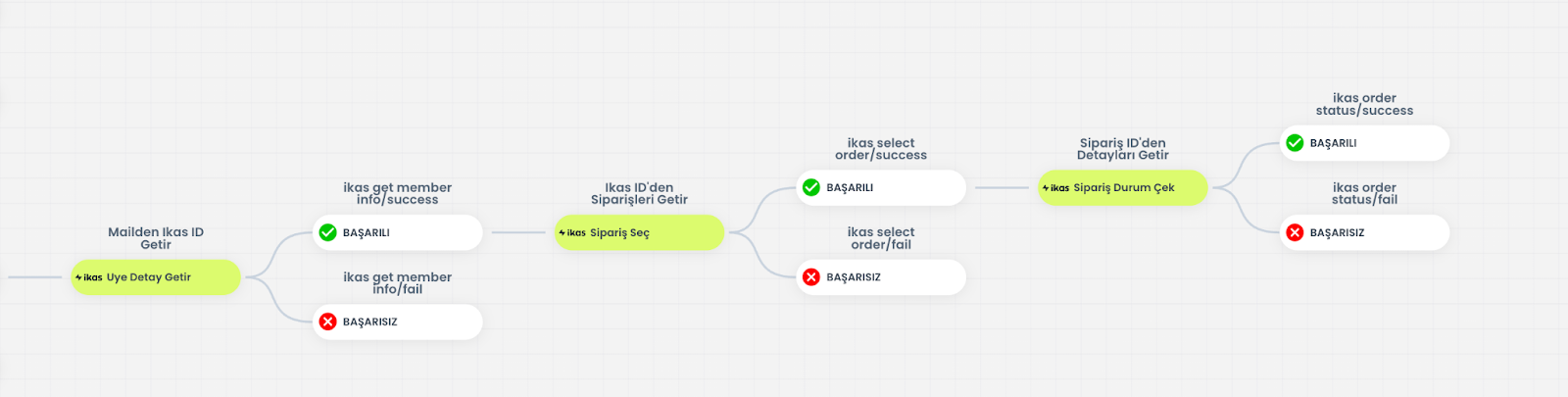 Ikas tarafındaki sipariş sorgulama kurgusu basit bir mantıkla ilerler.