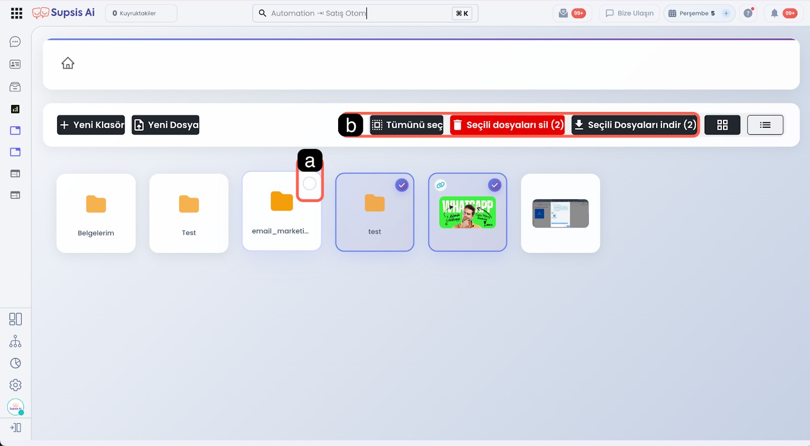 b - Drive İşlemleri Seçilen içerikler için toplu ya da tekli; silme, indirme ve toplu seçme seçeneklerini sunar.