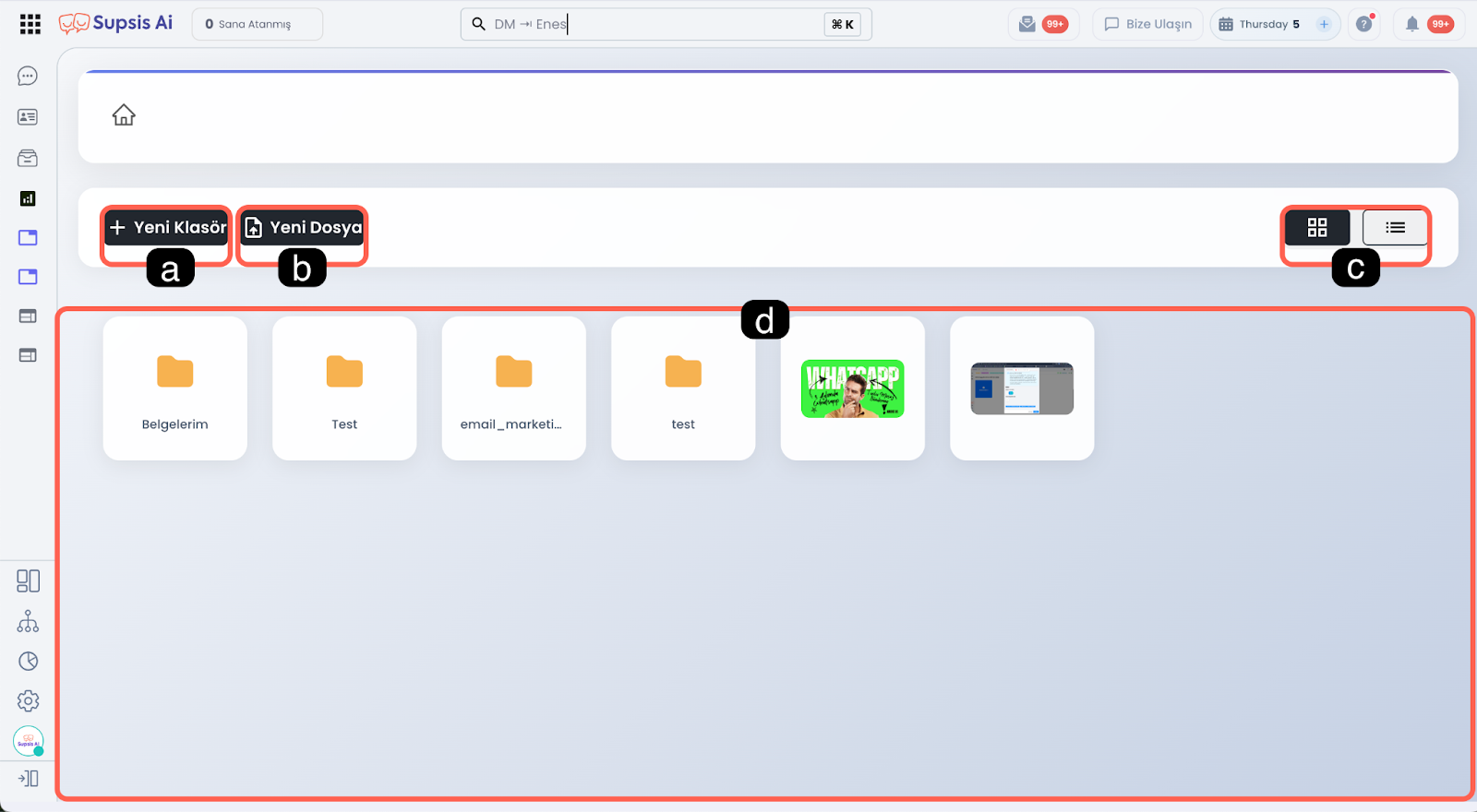 a - Modüller Tüm Supsis Ai modüllerinin listelendiği ana menü alanıdır.