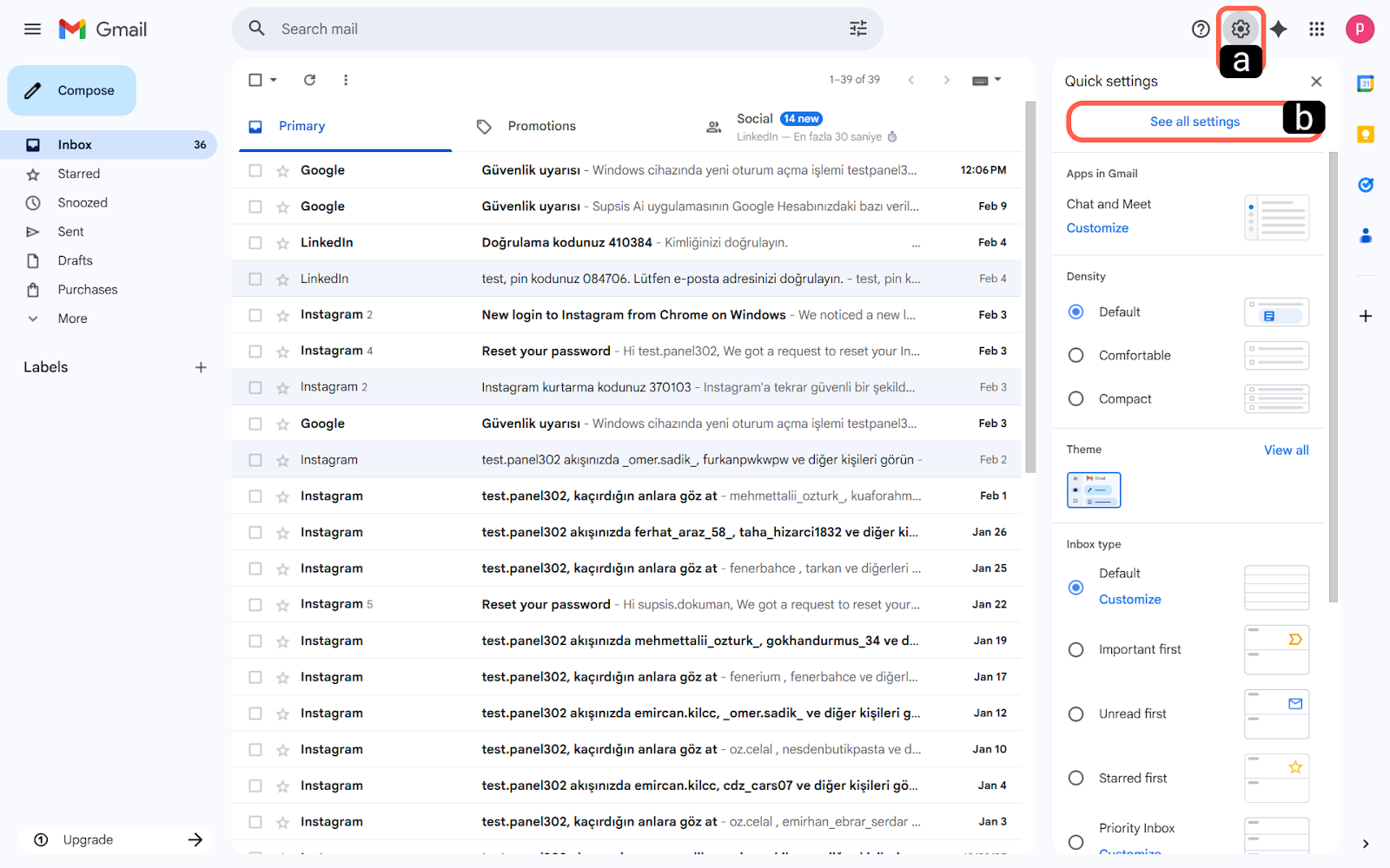Gmail arayüzünüzün sağ üst köşesinde bulunan Ayarlar (çark simgesi) ikonuna tıklayın. -