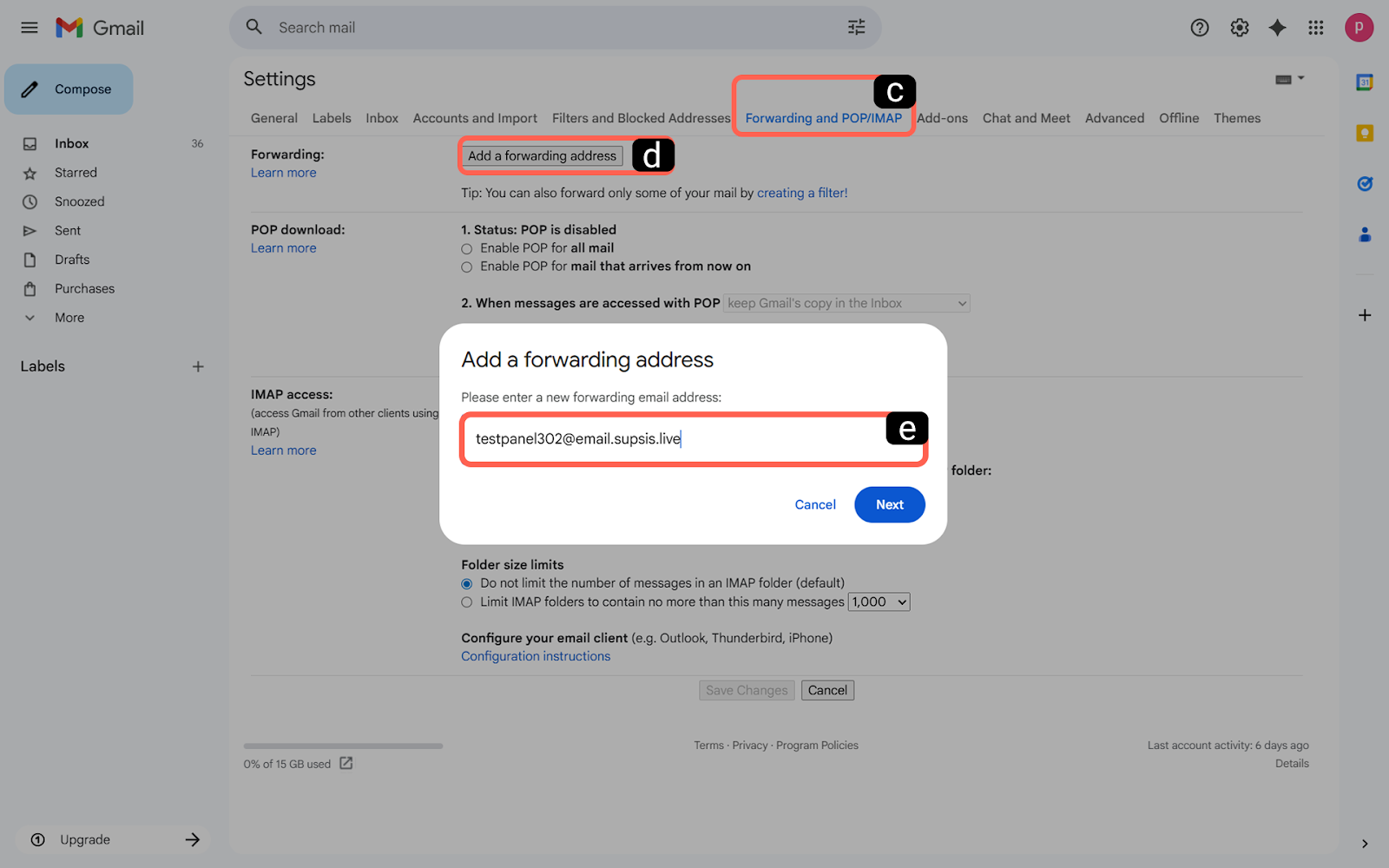Supsis Ai panelinden mail doğrulamasını tamamladıktan sonra Gmail ekranına geri dönün. "Gelen iletinin bir kopyasını şuraya yönlendir" seçeneğini aktif hale getirin. -