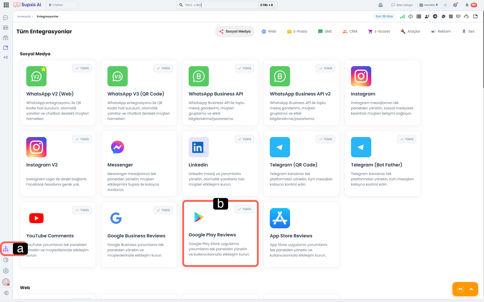 a – Entegrasyonlar