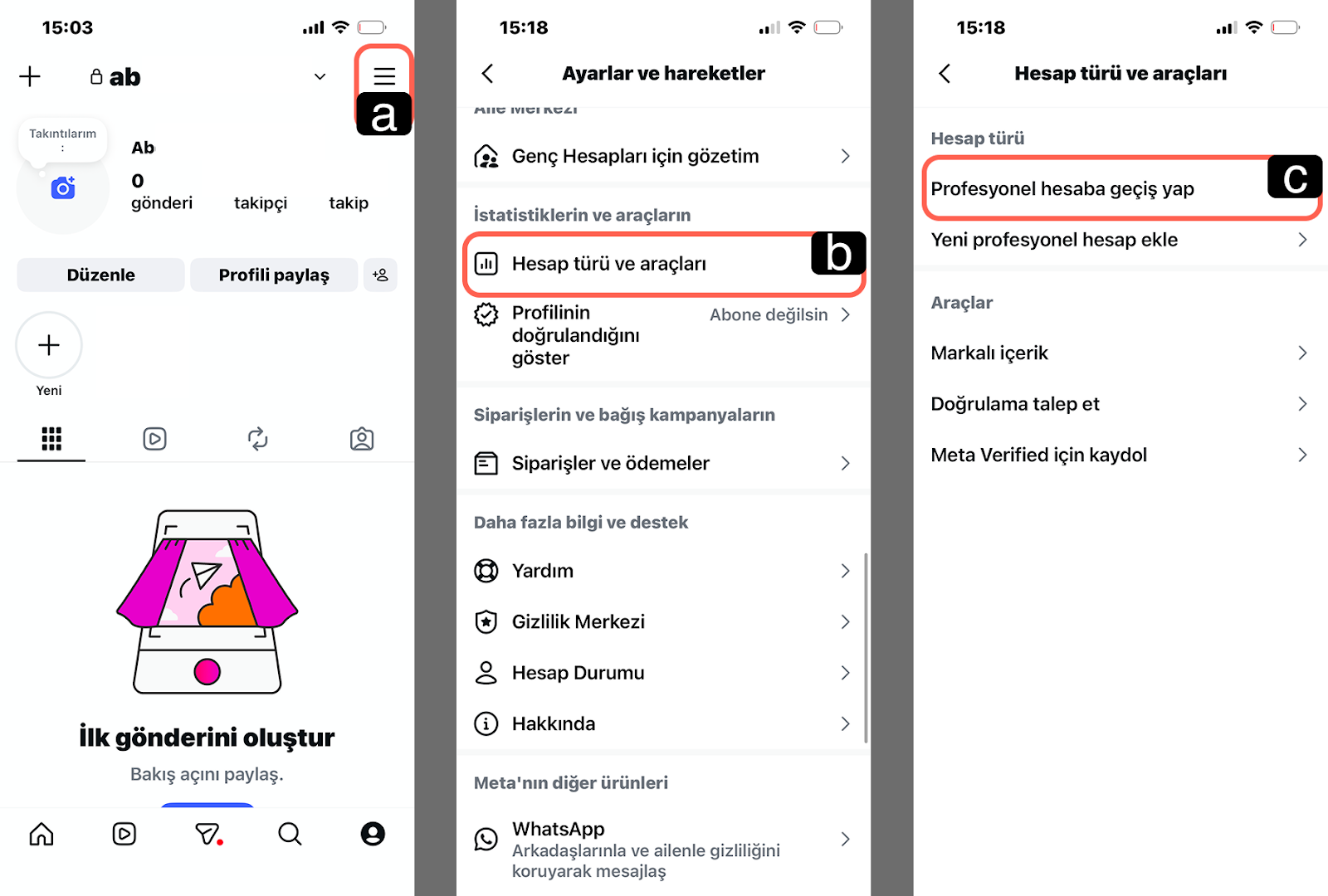 1.c – Instagram Hesabını Porfesyonel Hesabına Çevirmek