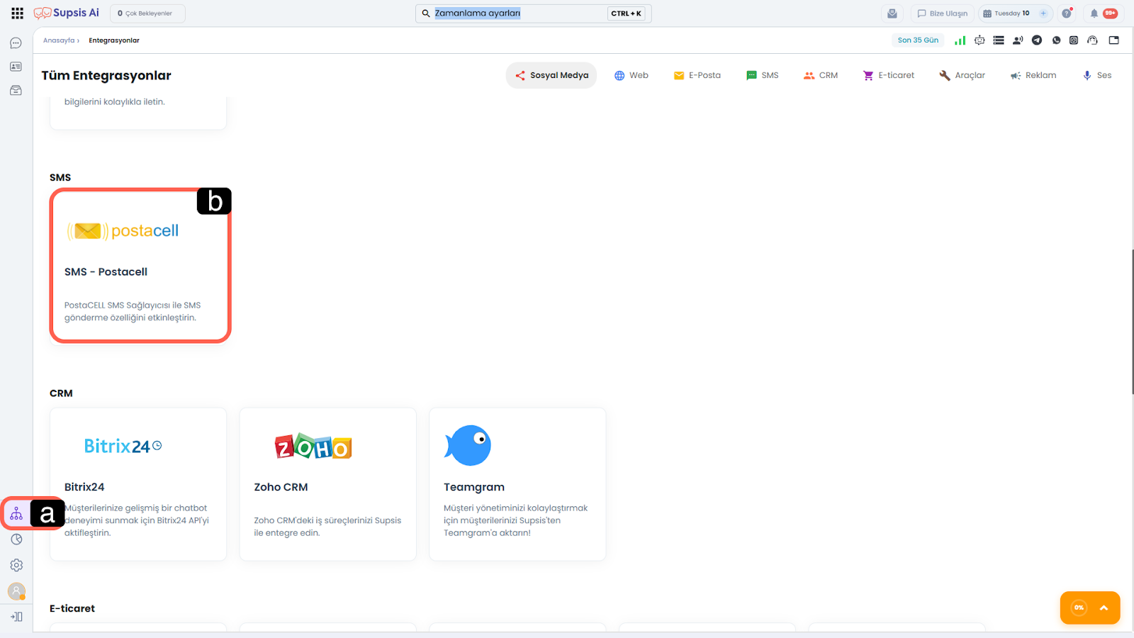 a – Entegrasyonlar Menüsü