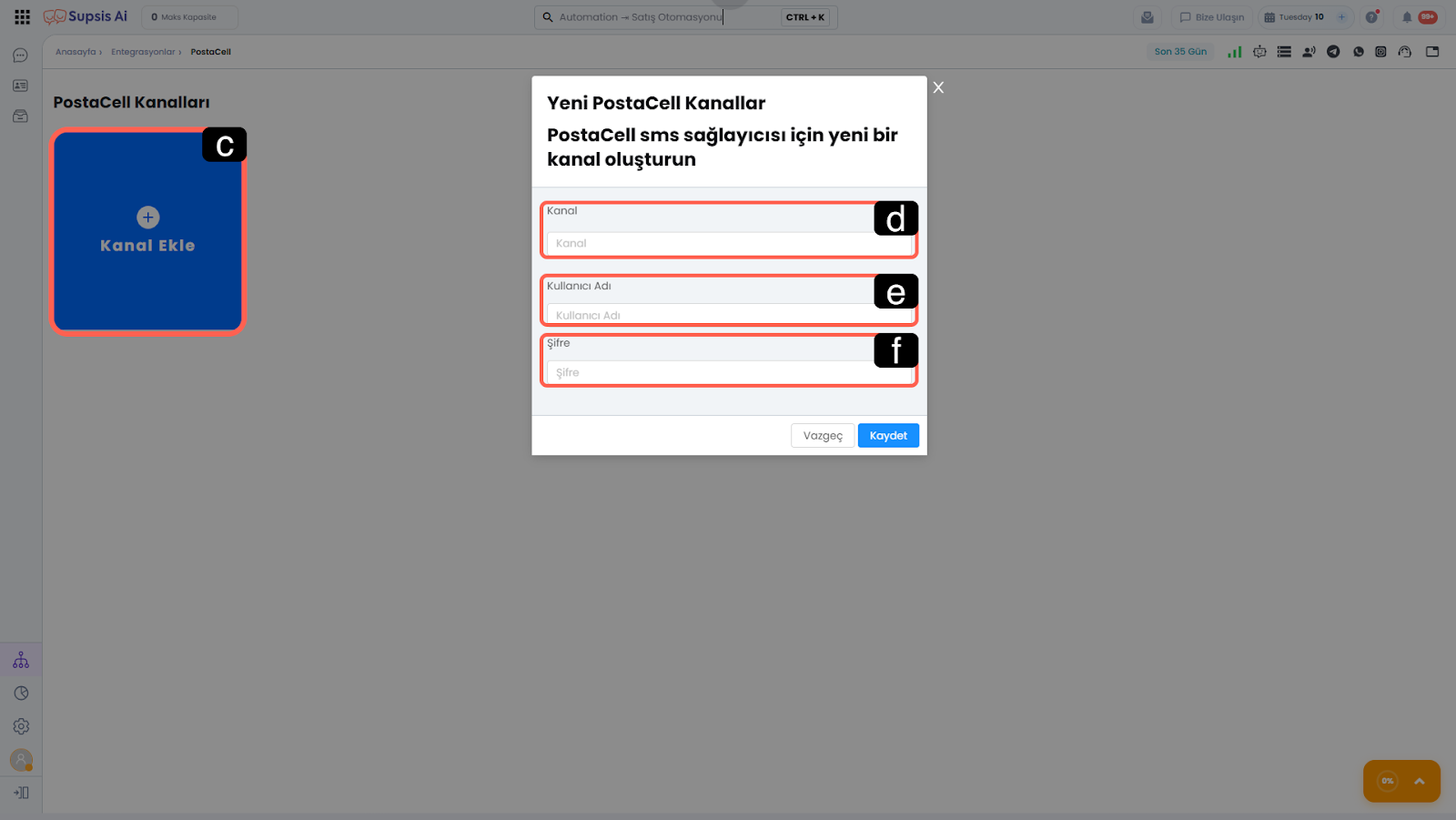 2-) Postacell & Supsis Ai Entegrasyonu