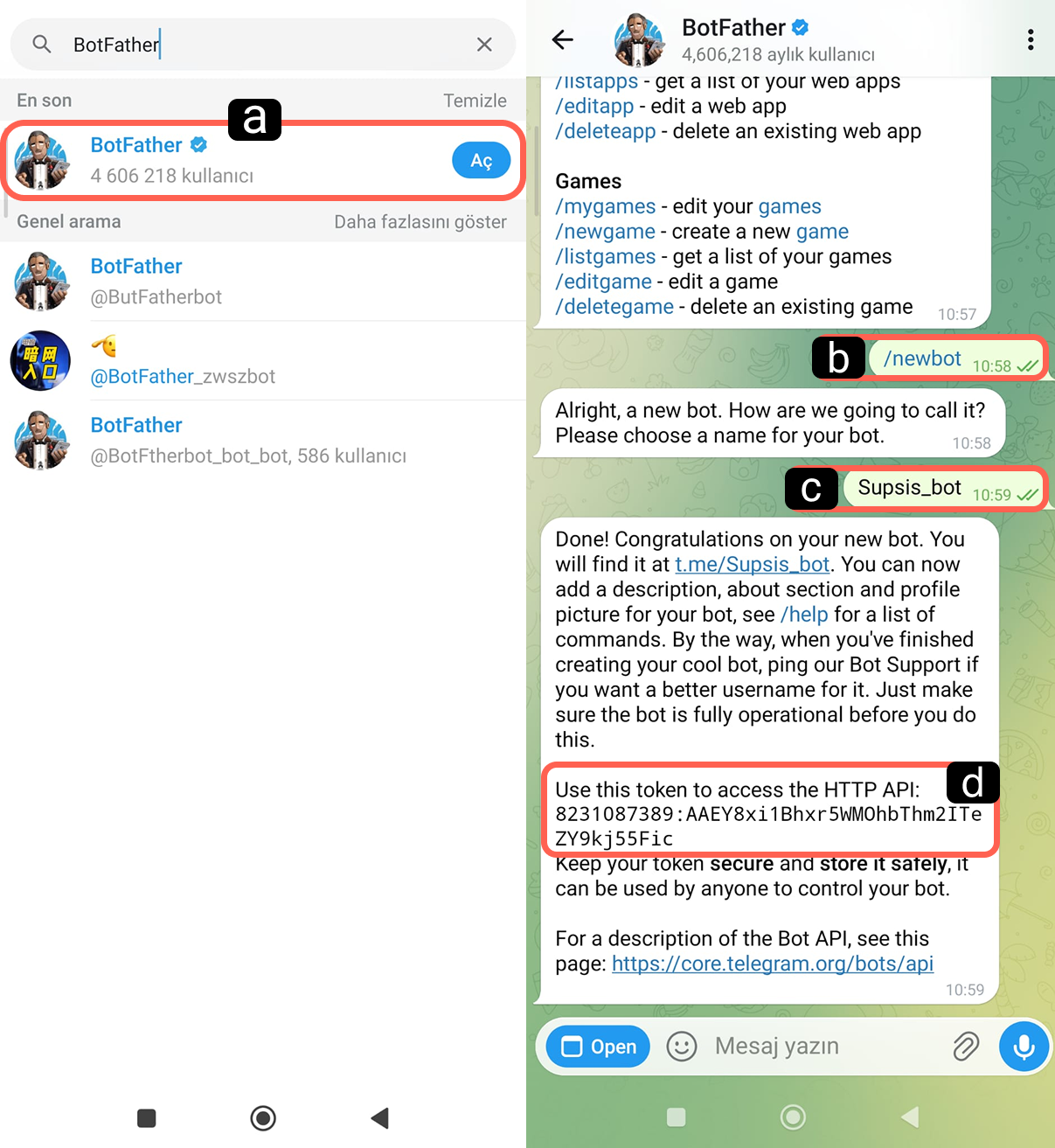b – Telegram (Bot Father) Kanalı