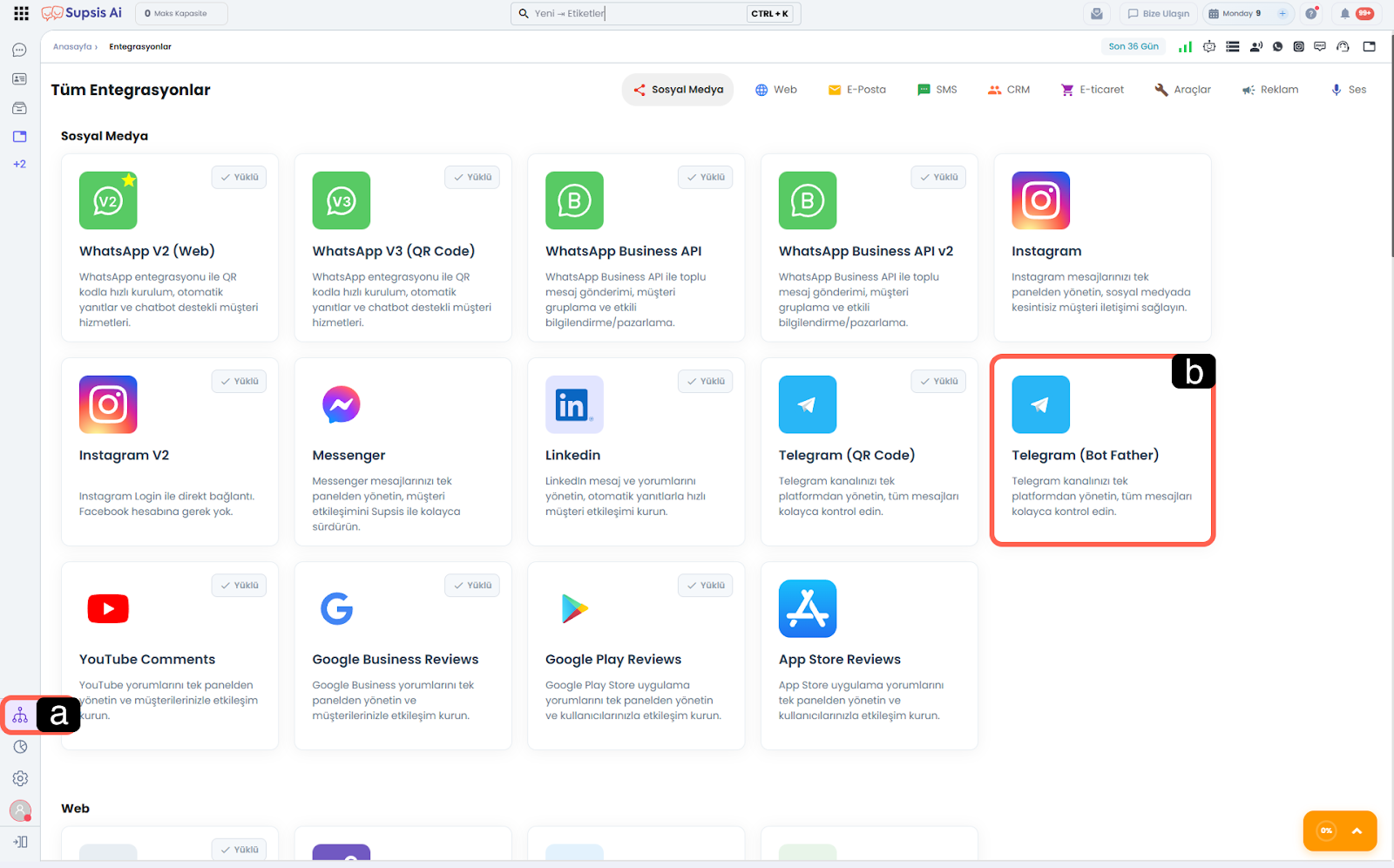 a – Entegrasyonlar