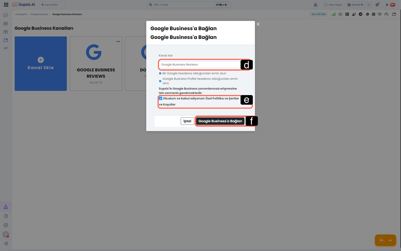 Kanal Adı, Youtube hesabınızın Supsis Ai panelinde görüneceği adı belirlemenizi sağlar. Bu ad Youtube hesabınızın Supsis Ai panelinde görünen adını temsil eder -
